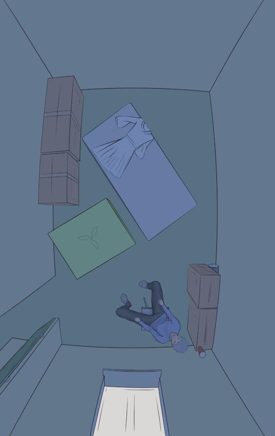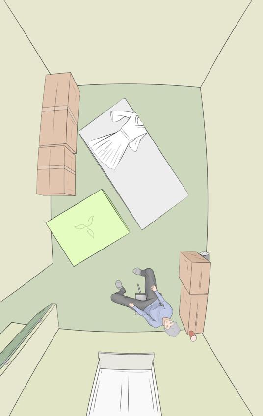 У стен стояли еще не распакованные коробки, а на полу лежал матрас.