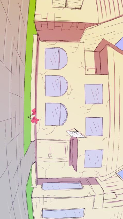 Там был маленький выступ, где может поместиться с комфортом максимум пара человек. Проход внутрь был за большой закрытой дверью; входная группа красиво отделана камнем. В окне над ней, прямо по центру стекла, был нанесен знакомый символ в виде трех листьев, на сей раз — в треугольнике, который, в свою очередь, располагался внутри круга.