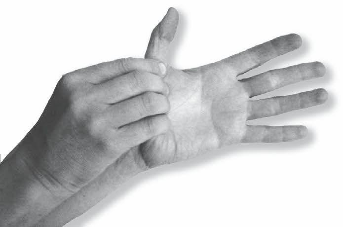 4. Растираем и разминаем возвышение большого пальца, переходя на ребро ладони (фото 1, а). Затем массируем пальцы, начиная с большого, покручивающим движением – представьте себе тугую перчатку, которую снимаем с каждого пальца по отдельности. Задействуем для «снятия» 2–3 пальца массирующей руки. Повторим все движения для другой руки.