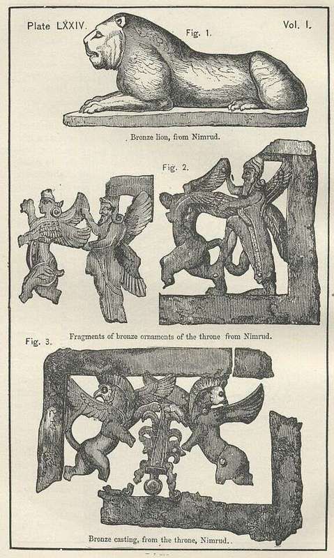 It appears that occasionally the advance of the troops was along a road. Ordinarily, however, they found no such convenience, but had to press forward through woods and over mountains as they best could. Whatever the obstructions, the chariot of the monarch was in some way or other conveyed across them, though it is difficult to suppose that he could have always remained, as he is represented, seated in it. Probably he occasionally dismounted, and made use of one of the led horses by which he was always accompanied, while sometimes he even condescended to proceed on foot. [PLATE CIX., Fig. 2.] Tile use of palanquins or litters seem not to have been known to the Assyrians, though it was undoubtedly very ancient in Asia; but the king was sometimes carried on men's shoulders, seated on his throne in the way that we see the enthroned gods borne in many of the sculptures.