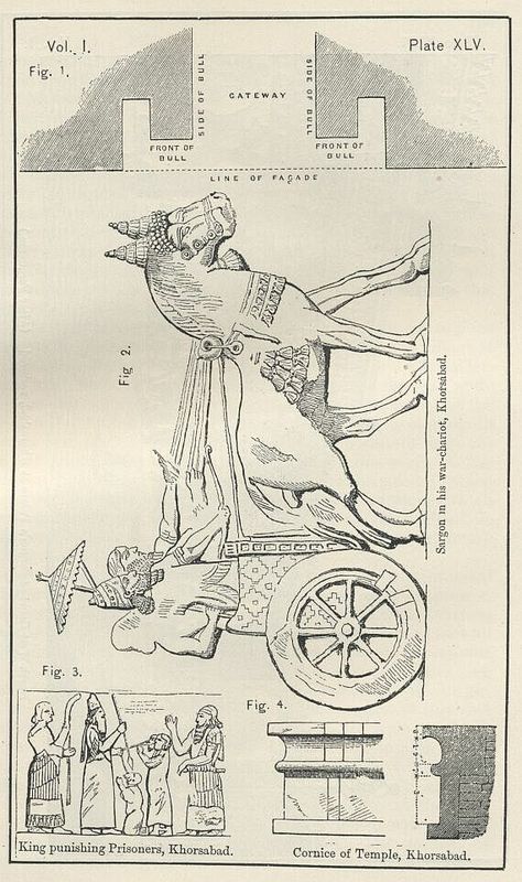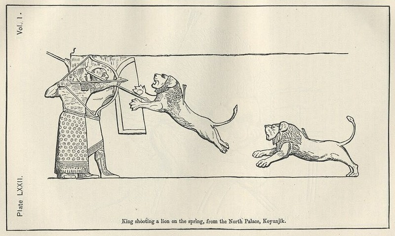 The wars of the Assyrians, like those of ancient Rome, consisted of annual inroads into the territories of their neighbors, repeated year after year, till the enemy was exhausted, sued for peace, and admitted the suzerainty of the more powerful nation. The king in person usually led forth his army, in spring or early summer, when the mountain passes were opened, and, crossing his own borders, invaded some one or other of the adjacent countries. The monarch himself invariably rode forth in his chariot, arrayed in his regal robes, and with the tiara upon his head: he was accompanied by numerous attendants, and generally preceded and followed by the spearmen of the Royal Guard, and a detachment of horse-archers. Conspicuous among the attendants were the charioteer who managed the reins, and the parasol-bearer, commonly a eunuch, who, standing in the chariot behind the monarch, held the emblem of sovereignty over his head. A bow-bearer, a quiver-bearer, and a mace-bearer were usually also in attendance, walking before or behind the chariot of the king, who, however, did not often depend for arms wholly upon them, but carried a bow in his left hand, and one or more arrows in his right, while he had a further store of the latter either in or outside his chariot. Two or three led horses were always at hand, to furnish a means of escape in any difficulty. The army, marshalled in its several corps, in part preceded the royal cortege, in part followed at a little distance behind it.