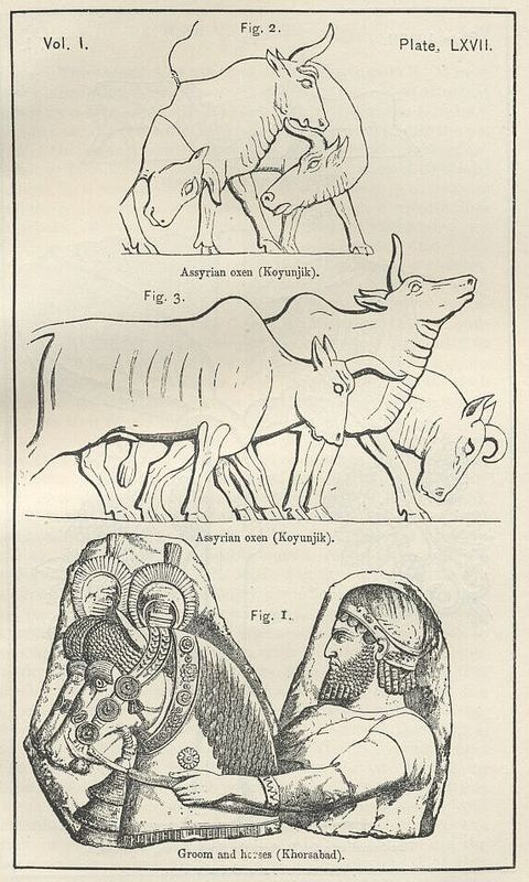 Occasionally the monarchs were not content with bringing home domesticated animals only, but took the trouble to transport from distant regions into Assyria wild beasts of various kinds. Tiglath-Pileser I. informs us in general terms that, besides carrying off the droves of the horses, cattle, and asses that he obtained from the subjugated countries, he "took away and drove off the herds of the wild goats and the ibexes, the wild sheep and the wild cattle;" and another monarch mentions that in one expedition he carried off from the middle Euphrates a drove of forty wild cattle, and also a flock of twenty ostriches. The object seems to have been to stock Assyria with a variety and an abundance of animals of chase.