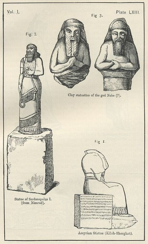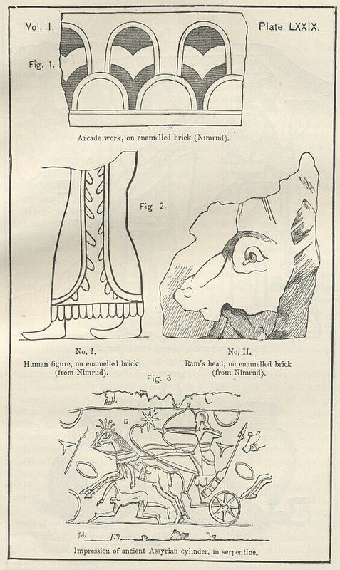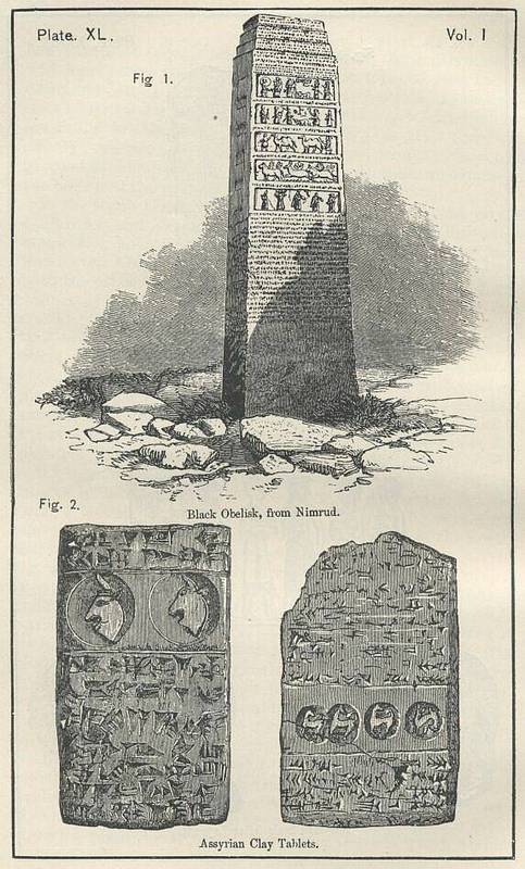 When a country was regarded as subjugated, the Assyrian monarch commonly marked the establishment of his sovereignty by erecting a memorial in some conspicuous or important situation within the territory conquered, as an enduring sign of his having taken possession. These memorials were either engraved on the natural rock or on solid blocks of stone cut into the form of a broad low stele. They contained a figure of the king, usually enclosed in an arched frame; and an inscription, of greater or less length, setting forth his name, his titles, and some of his exploits. More than thirty such memorials are mentioned in the extant Inscriptions, and the researches of recent times have recovered some ten or twelve of them. They uniformly represent the king in his sacerdotal robes, with the sacred collar round his neck, and the emblems of the gods above his head, raising the right hand in the act of adoration, as if he were giving thanks to Asshur and his guardian deities on account of his successes.