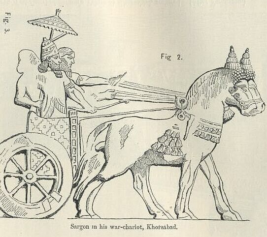 During the time of the Upper dynasty, cavalry appears to have been but little used. Tiglath-Pileser I. in the whole of his long Inscription has not a single mention of them, though he speaks of his chariots continually. In the sculptures of Asshur-izir-pal, the father of the Black-Obelisk king, while chariots abound, horsemen occur only in rare instances. Afterwards, under Sargon and Sennacherib, we notice a great change in this respect. The chariot comes to be almost confined to the king, while horsemen are frequent in the battle scenes.