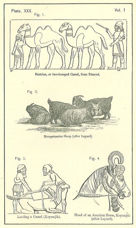 Together with their captives, the Assyrians carried off vast quantities of the domesticated animals, such as oxen, sheep, goats, horses, asses, camels, and mules. The numbers mentioned in the Inscriptions are sometimes almost incredible. Sennacherib, for instance, says that in one foray he bore off from the tribes on the Euphrates "7200 horses and mares, 5230 camels, 11,000 mules, 120,000 oxen, and 800,000 sheep"! Other kings omit particulars, but speak of the captured animals which they led away as being "too numerous to be counted," or "countless as the stars of heaven." The Assyrian sculptors are limited by the nature of their art to comparatively small numbers, but they show us horses, camels, and mules in the train of a returning army, together with groups of the other animals, indicative of the vast flocks and herds continually mentioned in the Inscriptions.