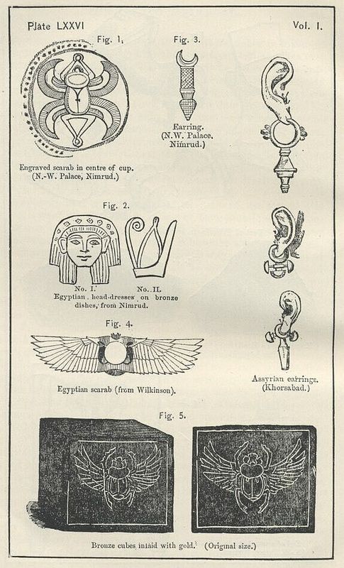 The houses of the city were also commonly plundered, and everything of value in them was carried off. Long files of men, each bearing some article of furniture out of the gate of a captured town, are frequent upon the bas-reliefs, where we likewise often observe in the train of a returning army carts laden with household stuff of every kind, alternating with long strings of captives. All the spoil seems to have been first brought by the individual plunderers to one place, where it was carefully sorted and counted in the presence and under the superintendence of royal scribes, who took an exact inventory of the whole before it was carried away by its captors. [PLATE CXI., Fig. 3.] Scales were used to determine the weight of articles made of the precious metals, which might otherwise have been subjected to clipping. We may conclude from these practices that a certain proportion of the value of all private spoil was either due to the royal treasury, or required to be paid to the gods in acknowledgment of their aid and protection. Besides the private spoil, there was a portion which was from the first set apart exclusively for the monarch. This consisted especially of the public treasure of the captured city, the gold and silver, whether in bullion, plate, or ornaments, from the palace of its prince, and the idols, and probably the other valuables from the temples.