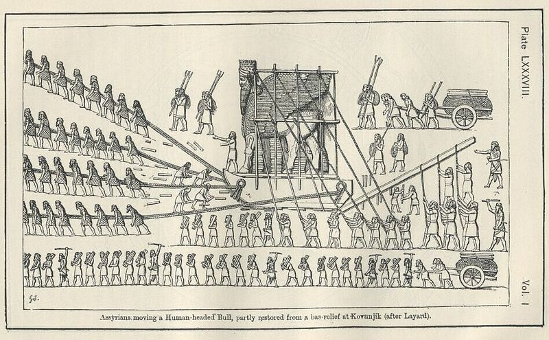 When the refuge sought was an island, if it lay near the shore, the Assyrians would sometimes employ the natives of the adjacent coast to transport beams of wood and other materials by means of their boats, in order to form a sort of bridge or mole reaching from the mainland to the isle whereto their foes had fled. Such a design was entertained, or at least professed, by Xerxes after the destruction of his fleet in the battle of Salamis, and it was successfully executed by Alexander the Great, who took in this way the new or island of Tyre. From a series of reliefs discovered at Khorsabad wo may conclude that more than two hundred years before the earlier of these two occasions, the Assyrians had conceived the idea, and even succeeded in carrying out the plan, of reducing islands near the coast by moles.