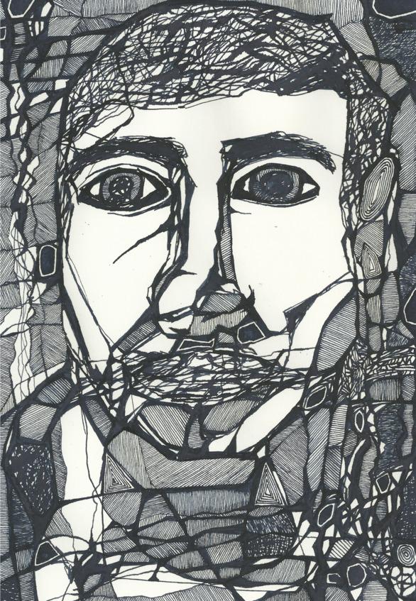1. А. В. Глухов. Автопортрет. 2019. Бумага, чернила. 30Х21.