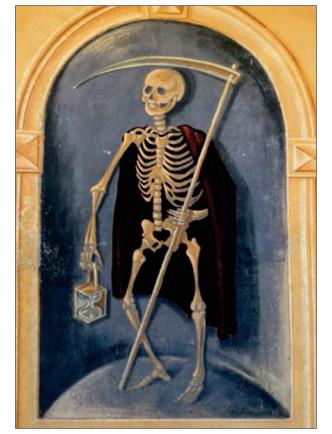 В средневековом искусстве смерть изображалась в виде Старухи с косой, в черном плаще
