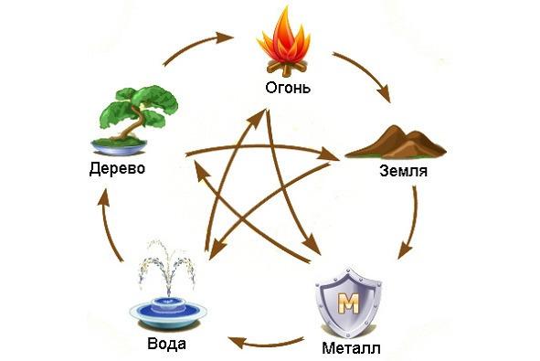 Так же, следует отметить, что каждый из пяти первоэлементов оказывает влияние на остальные элементы. К примеру, он может ослаблять или разрушать одни из них, и усиливать или поддерживать другие.