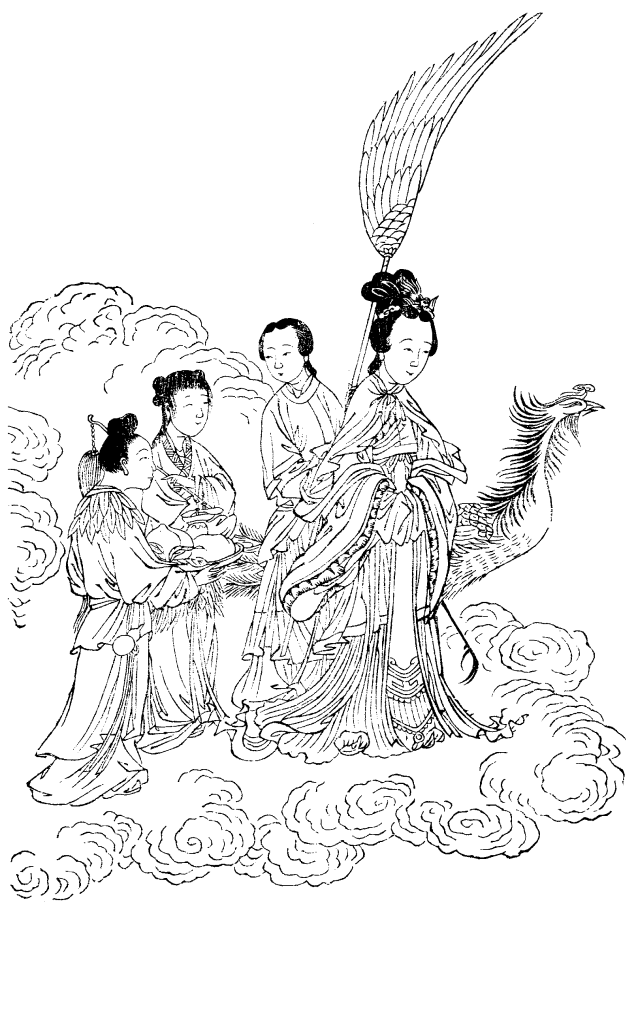 Между тем Небесная дева обучила войско юэского князя и, ни с кем не простившись, покинула княжество Юэ. Окутанная легким туманом, она шла по старой проезжей дороге, как вдруг услышала, что ее кто-то окликнул.