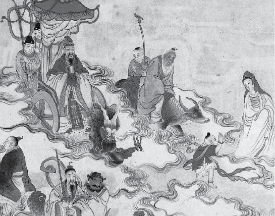 Взгляд его скользнул по золотым шкафам и яшмовым ларцам, в которых, судя по надписям, хранились книги, толкующие о трех учениях и девяти течениях. На конфуцианских книгах он не стал задерживаться: «Эти не буду трогать, пусть их изучают ученые-сюцаи» [21]. Буддийские книги тоже оставили его равнодушным — пустое, мол, занятие, для желтолицых старцев. Но как только на глаза ему попалась табличка с надписью «даосские», он сразу же сказал себе: «Вот это как раз для меня!»