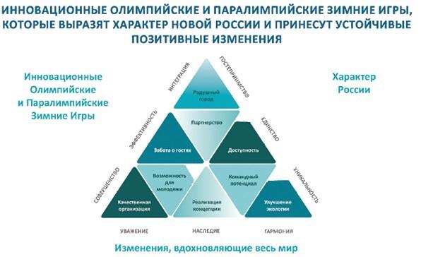 На этой основе топ-командой создается такое ви́дение: «Инновационные зимние Олимпийские и Паралимпийские игры раскроют характер новой России, привнесут позитивные изменения, вдохновят весь мир». Здесь каждое слово выстрадано и стоит на своем месте не просто так.