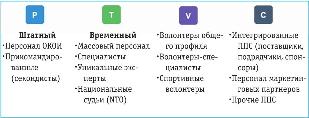 Отвечают «нет», здесь все не просто так. Оказывается, в спортивном мероприятии будет задействовано много разных типов персонала: штатный персонал; временный персонал, который нужен на короткий период времени перед Играми; персонал подрядчиков и партнеров; участники церемонии, волонтеры и т. д. Хотя Оргкомитет непосредственно управляет не всеми этими людьми, успех Игр зависит от вклада каждого. Гостю Игр все равно, кто ему помогает – руководитель или волонтер, если ему не смогут показать дорогу к объекту или будет плохо работать Wi-Fi. Поэтому ответственность WKF – это все люди, влияющие на успех Игр.