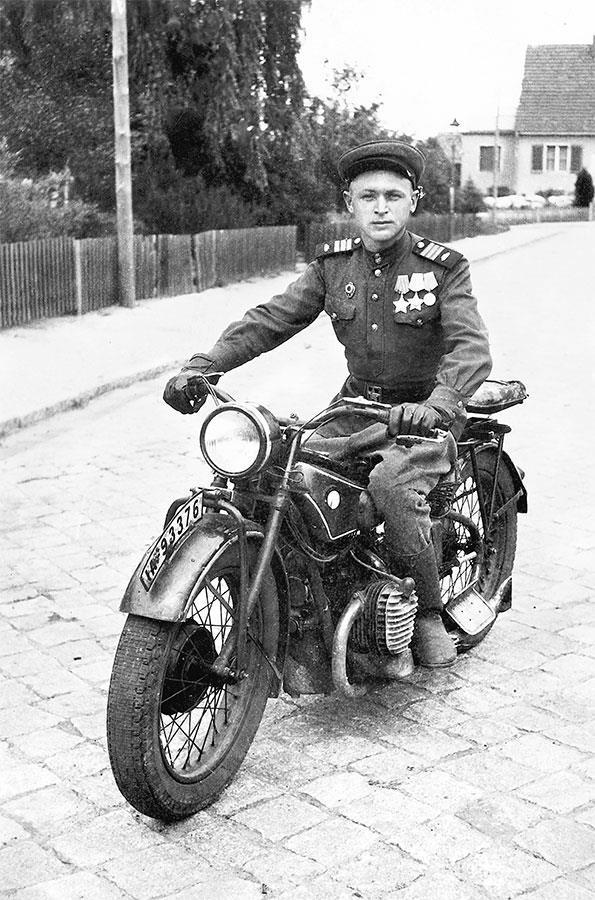 И не был бы он Ленькой Бандитом, если бы не исхитрился украсть точно такой же мотоцикл, который принадлежал коменданту Берлина с американской стороны. Они с дружками-однополчанами поменяли номер, прикрутили именную табличку, предусмотрительно снятые с проданной машины. На фото в начале этой книги он запечатлен именно возле того самого украденного мотоцикла. Папе предлагали остаться в Берлине и руководить мотошколой. Выделили квартиру; он даже успел купить гражданский костюм. Был убежден, что они с мамой будут там жить. Но она категорически отказалась: сказала, что не поедет к немцам, убившим ее родителей.
