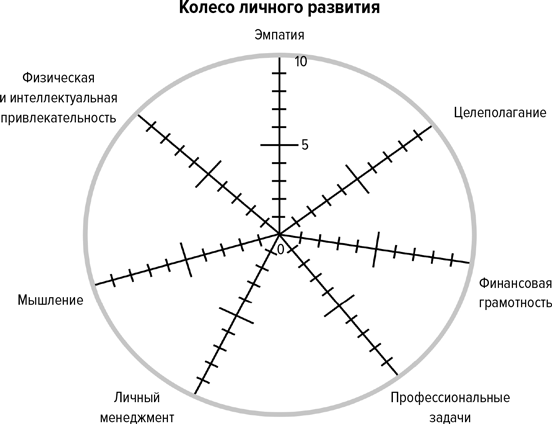 Развивать ресурсы можно в разной последовательности, главное — развивать их синхронно, не делая сильных перекосов. В каждом блоке книги вам будет представлен чек-лист для текущей и последующей оценки ресурса, а также методы и техники, которые помогут вам развиваться и достигать поставленных целей. Текущая количественная оценка каждого ресурса будет фиксироваться на Колесе вашего личного развития в текущий момент, это позволит качественно оценить каждый ресурс и сделать выводы.