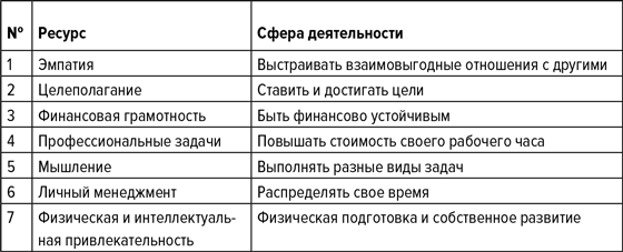 Итак, рассматриваем семь ресурсов — семь сфер деятельности.