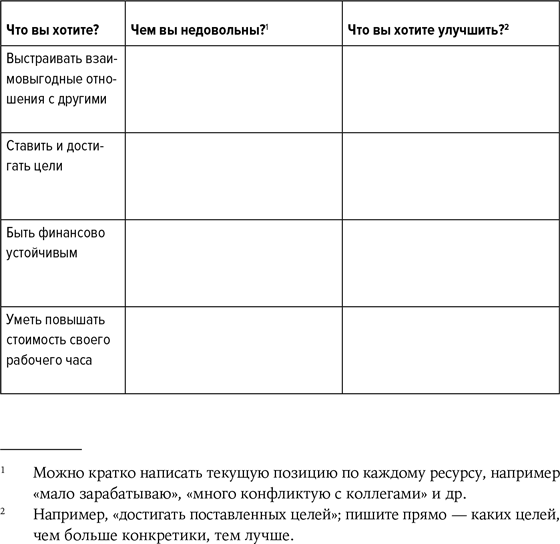 Итак, личное развитие будем рассматривать через систему базовых ресурсов, обозначенных в начале параграфа. Можно включать и другие ресурсные аспекты развития, но мы будем разбирать основные.