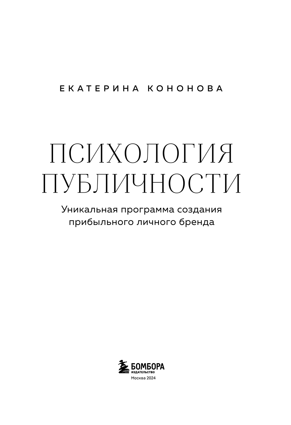 Название «Психология публичности» относится именно к этому определению, и книга отвечает на вопрос: как сделать так, чтобы ваше внутреннее стало внешним и при этом вам было комфортно достигать своих целей?