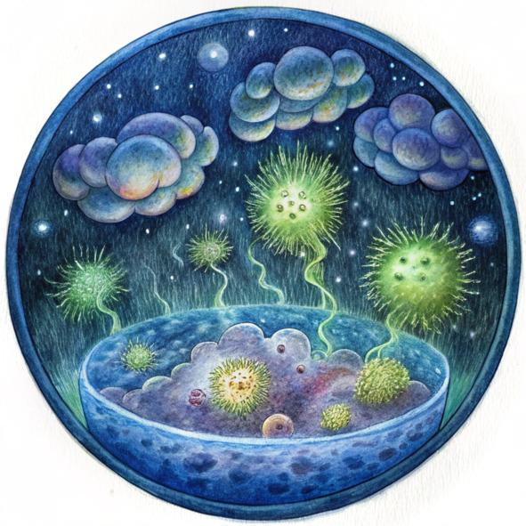 Его глаза, увеличенные очками в толстой оправе, были прикованы к чашке Петри, которая излучала мягкое, пульсирующее свечение. Модифицированные бактерии, похожие на крошечные созвездия света, размножались с поразительной скоростью, почти как ослепительный вихрь в ограниченном пространстве.