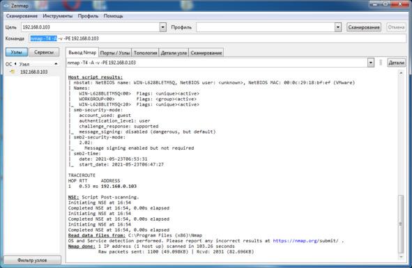 Рисунок 1.10 — IDLE сканирование в Zenmap