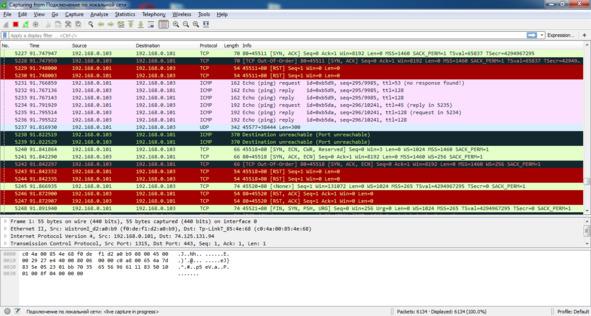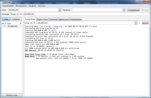 Процесс и результаты ACK сканирования представлены на рисунках 1.14—1.15.