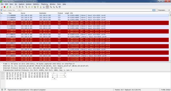 Рисунок 1.5 — Трафик TCP сканирования в Wireshark