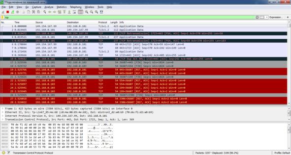 Рисунок 1.15 — Трафик ACK сканирования в Wireshark