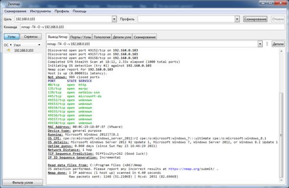 Процесс и результаты сканирования на определение операционной системы представлены на рисунках 1.16—1.17.