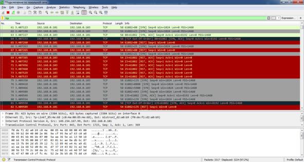 Рисунок 1.23 — Трафик сканирования уязвимостей в Wireshark