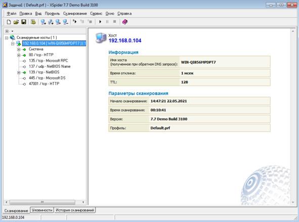 Рисунок 1.21 — Сканирование уязвимостей в XSpider