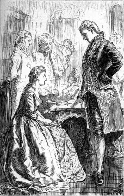 One night I was sitting next to Sophie, and longing for the time when we might have supper and go home, so as to be able to speak together, a thing forbidden by Madame Rupprecht's rules of etiquette, which strictly prohibited any but the most necessary conversation passing between members of the same family when in society. I was sitting, I say, scarcely keeping back my inclination to yawn, when two gentlemen came in, one of whom was evidently a stranger to the whole party, from the formal manner in which the host led him up, and presented him to the hostess. I thought I had never seen any one so handsome or so elegant. His hair was powdered, of course, but one could see from his complexion that it was fair in its natural state. His features were as delicate as a girl's, and set off by two little "mouches," as we called patches in those days, one at the left corner of his mouth, the other prolonging, as it were, the right eye. His dress was blue and silver. I was so lost in admiration of this beautiful young man, that I was as much surprised as if the angel Gabriel had spoken to me, when the lady of the house brought him forward to present him to me. She called him Monsieur de la Tourelle, and he began to speak to me in French; but though I understood him perfectly, I dared not trust myself to reply to him in that language. Then he tried German, speaking it with a kind of soft lisp that I thought charming. But, before the end of the evening, I became a little tired of the affected softness and effeminacy of his manners, and the exaggerated compliments he paid me, which had the effect of making all the company turn round and look at me. Madame Rupprecht was, however, pleased with the precise thing that displeased me. She liked either Sophie or me to create a sensation; of course she would have preferred that it should have been her daughter, but her daughter's friend was next best. As we went away, I heard Madame Rupprecht and Monsieur de la Tourelle reciprocating civil speeches with might and main, from which I found out that the French gentleman was coming to call on us the next day. I do not know whether I was more glad or frightened, for I had been kept upon stilts of good manners all the evening. But still I was flattered when Madame Rupprecht spoke as if she had invited him, because he had shown pleasure in my society, and even more gratified by Sophie's ungrudging delight at the evident interest I had excited in so fine and agreeable a gentleman. Yet, with all this, they had hard work to keep me from running out of the salon the next day, when we heard his voice inquiring at the gate on the stairs for Madame Rupprecht. They had made me put on my Sunday gown, and they themselves were dressed as for a reception.