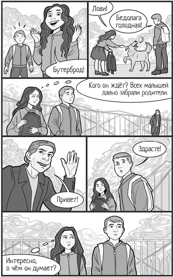 Катя открыла глаза. Тот самый парень – дежурный из школьного коридора! Он смело закрыл её своим телом, встав перед собакой, и расставил руки.
