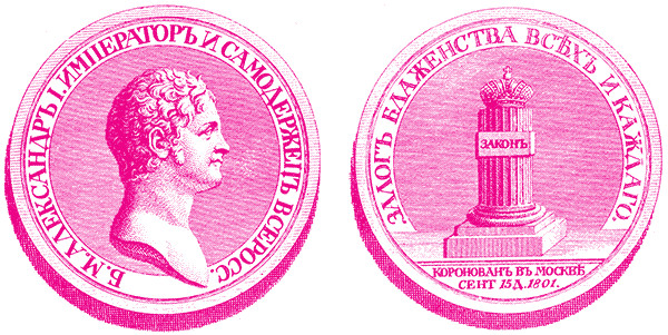Царствование. Александр, преемник императора Павла, вступил на престол с более широкой программой и осуществлял ее обдуманнее и последовательнее предшественника. Я указывал на два основных стремления, которые составляли содержание внутренней политики России с начала XIX столетия: это уравнение сословий перед законом и введение их в совместно дружную государственную деятельность. Это были основные задачи эпохи, но они осложнялись другими стремлениями, которые были необходимой подготовкой к их разрешению либо неизбежно вытекали из их разрешения. Уравнение сословий перед законом, естественно, изменяло самые основания законодательства; таким образом, возникала потребность в кодификации с целью привести в согласие различные узаконения, прежние и новые.