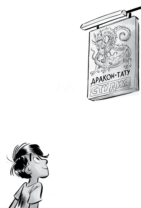 Ларри ещё раз взглянул на экран своего телефона: да, несомненно, он прибыл в нужное место. Но где именно находится студия? Юноша вытер лоб, взмокший от пота, и поднял голову. На него вытаращились свирепые глаза огромного красного дракона, украшающего вывеску «Дракон-тату».