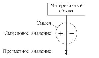 Как правило, знаки имеют предметные и смысловые значения. Предметным значением является тот объект, который представляется (или обозначается) знаком, смысловым значением — выражаемая знаком характеристика объекта, представителем которого является знак (информации об этом объекте, которая позволяет отличать предметы, являющиеся значениями знака, от всех других предметов). Предметное значение часто называют просто значением, а смысловое значение, если оно выражено в языке, — смыслом. Если смысловым значением являются зрительный образ, представление, интуиция и т. д., то смысловое значение называют идеей.