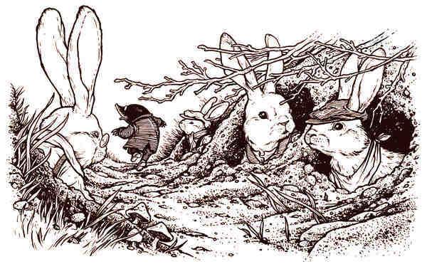 Присмотревшись, Крот увидел старого кролика, но не счёл нужным реагировать и, презрительно фыркнув, затопал вдоль изгороди, посмеиваясь над другими кроликами, которые торопливо выбирались из своих норок посмотреть, что там за шум.