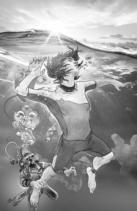 Его легкие горели, силы таяли, но Круз все же собрал их остаток для удара. Он размахнулся, и тут его кулак наткнулся на что-то гладкое и твердое. Вокруг поднялось облако пузырьков. Он увидел желтую змею. Нет, трубку! Это была не акула. Это был человек! Своими беспорядочными движениями Круз выдернул воздушный шланг из его акваланга. Круз ощутил резкую боль в щиколотке и в тот же момент почувствовал, что свободен! Сквозь поднимающиеся пузырьки он рассмотрел мелькание чьих-то ласт. Аквалангист уплывал.