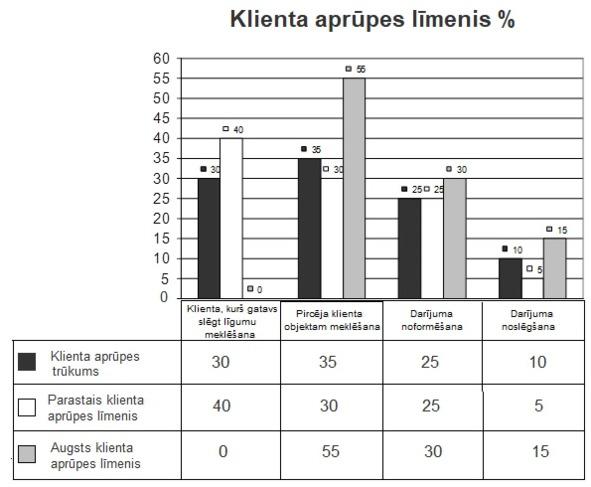 Tādējādi ir skaidri redzams, ka vienīgā iespēja nopelnīt ātrāk un bez pārtraukumiem, ir izdarīt tā, lai nevajadzētu tērēt laiku klientu meklējumos. Zemāk parādītais grafiks ir veidots pēc mākleru, kuri sen strādā Latvijas nekustamo īpašumu jomā, aptaujas rezultātiem. Šis grafiks uzskatāmi atspoguļo iepriekš minēto.
