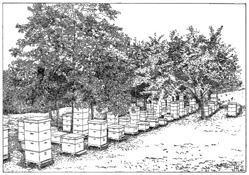 The time of removing bees from the cellar is less easily determined than that of putting them in. The colonies may be removed early and wrapped in black tar paper or left until the weather is settled. If the weather is very warm and the bees become fretful, the cellar must either be cooled or the bees removed. Some bee keepers prefer to remove bees at night, so that they can recover from the excitement and fly from the hive normally in the morning. One of the chief difficulties is to prevent the bees from getting into the wrong hives after their first flights. They often "drift" badly with the wind, and sometimes an outside row will become abnormally strong, leaving other colonies weak.