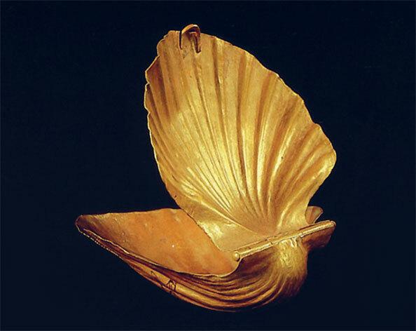 Пудреница в виде золотой ракушки. Обрядовый дар в гробницу Сехемхета. Египетский музей, Каир