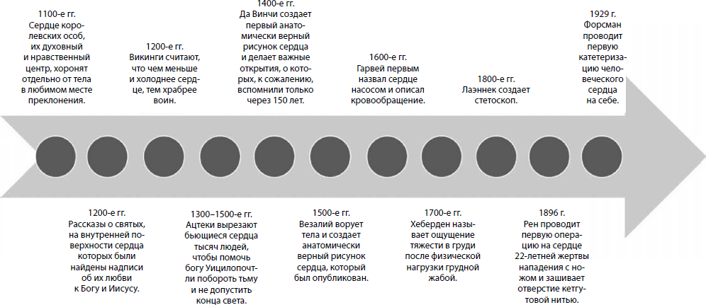 Для древних египтян сердце с отходящими от него сосудами было центром тела. Они знали, что, когда человек терял сознание, его пульс временно исчезал. Слабый пульс они объясняли смещением сердца левее его обычного положения – сегодня мы считаем это застойной сердечной недостаточностью. Повышенное слюноотделение называли «наводнение сердца». Известно, что у людей с острой сердечной недостаточностью часто наблюдается избыточное количество розовой (с примесью крови) пенистой мокроты. В папирусе Эдвина Смита древние египтяне отмечали, что боль в руке и грудной клетке со стороны сердца свидетельствует о приближении смерти. Это классическое описание сердечного приступа!