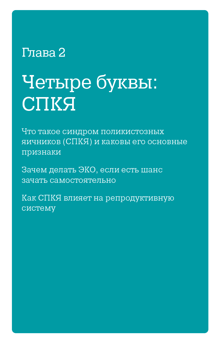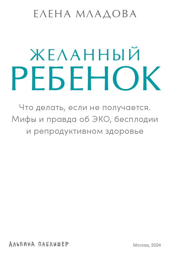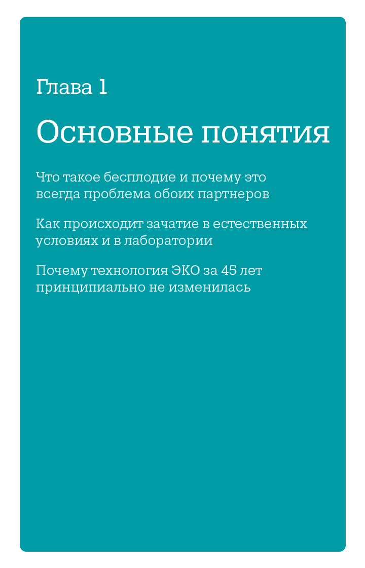 Я хочу, чтобы эта книга стала опорой для людей, которые ждут своего ребенка — месяц, год, 10 или 15 лет; чтобы она избавила от ощущения одиночества перед лицом репродуктивных трудностей. И конечно, стала источником знаний о том, как происходит зачатие, каковы этапы ЭКО, какие репродуктивные технологии можно ожидать в скором будущем, как повысить шансы на успех и стоит ли обращаться к альтернативным методам лечения.