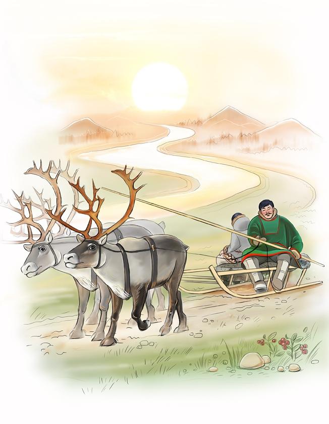 – Не отставай, Хадко[1], нам нужно до заката в стойбище вернуться! – крикнул отец своему шестилетнему сыну, вытащил на берег их небольшую плоскодонку – нгано[2], привязал её к вбитому колышку и стал аккуратно укладывать на хан[3] богатый улов – муксун, щёкур, нельма – лучшее, что могут подарить оленеводам реки и озера на Краю Земли. Затем, сел на хан с левой стороны, взял в руки хорей[4] и поводья.