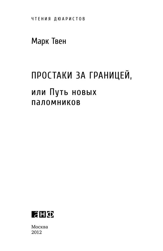 Простаки за границей, или Путь новых паломников / Марк Твен. — М.: Альпина нон-фикшн, 2012. — (Серия «Чтения Дюаристов»).
