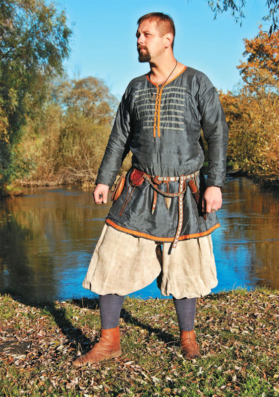 Подобный набор одежды несколько ограничивает владельца в возможностях применения – в прохладную погоду или дождь он будет не самым лучшим костюмом. Однако для солнечных фестивалей и теплых выездов вполне сгодится. Исходя из невысокой стоимости льна и цены повыше на кожу можно оценить подобный костюм примерно в $50. Затраты непременно возрастут, если пояс будет украшен множеством литых бляшек, а рубаха расшита. Также стоимость увеличится, если не шить комплект своими руками, а заказать у мастериц, которые в избытке предлагают свои услуги в среде реконструкторов. К их чести следует сказать, что плату за работу они требуют небольшую, а изделия делают качественными (рис. 1.9).
