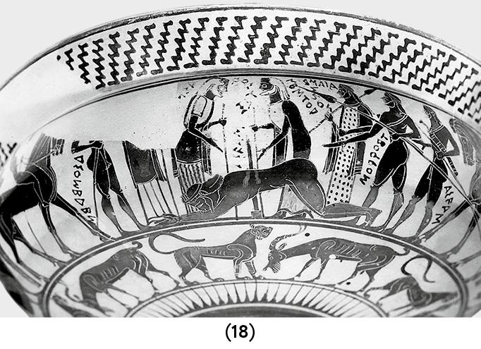 Трудности возникали постоянно. Изображения надлежало создавать таким образом, чтобы их можно было разместить в любом неудобном пространстве (на длинной узкой полосе, в высоком прямоугольнике, в треугольнике или даже круге); нужно было найти способ выразить то, что нельзя увидеть (череду превращений, накал страстей или скрытую угрозу), и придумать, как избежать путаницы, как отличить один миф от другого или от того, что мифом не является.