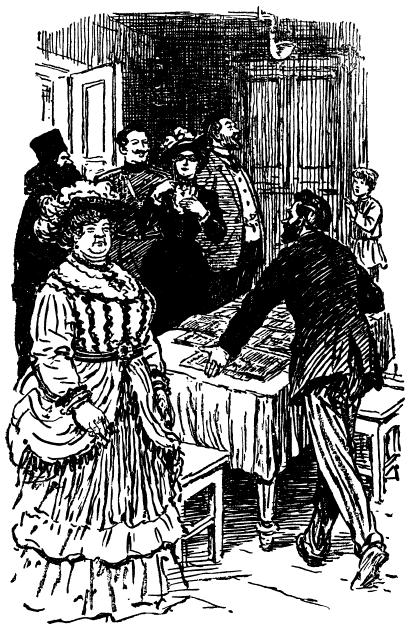 Чугунные ворота были раскрыты, и мы по усыпанной гравием аллее пошли к большому белому дому с колоннами. Около дома стояла худая, бледная барыня в голубой накидке и держала в костлявой руке палочку с очками на кончике. Перед барыней вертелся лысый, с розовыми щеками мужчина. Он что-то ей говорил, а что, мы не знали: все слова были непонятные.