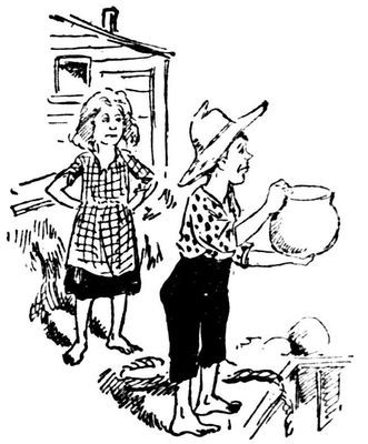 "She ought to have a bonnet. I'll chip in half a dollar for the bonnet."
