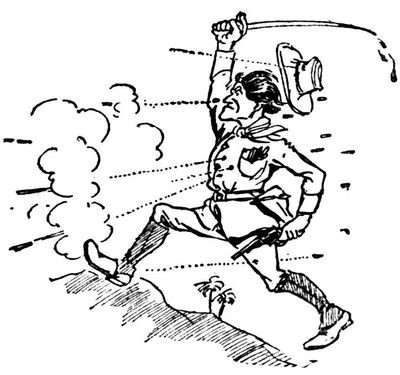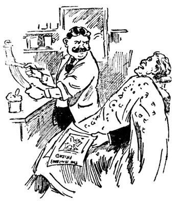 While I loitered in the grocer's who should come in but Dr. Instantaneous, as gay and chipper as though he had never killed a man in his thirty years of deadly practice. He's a crank on the liquor question, and to stave him off, I said: